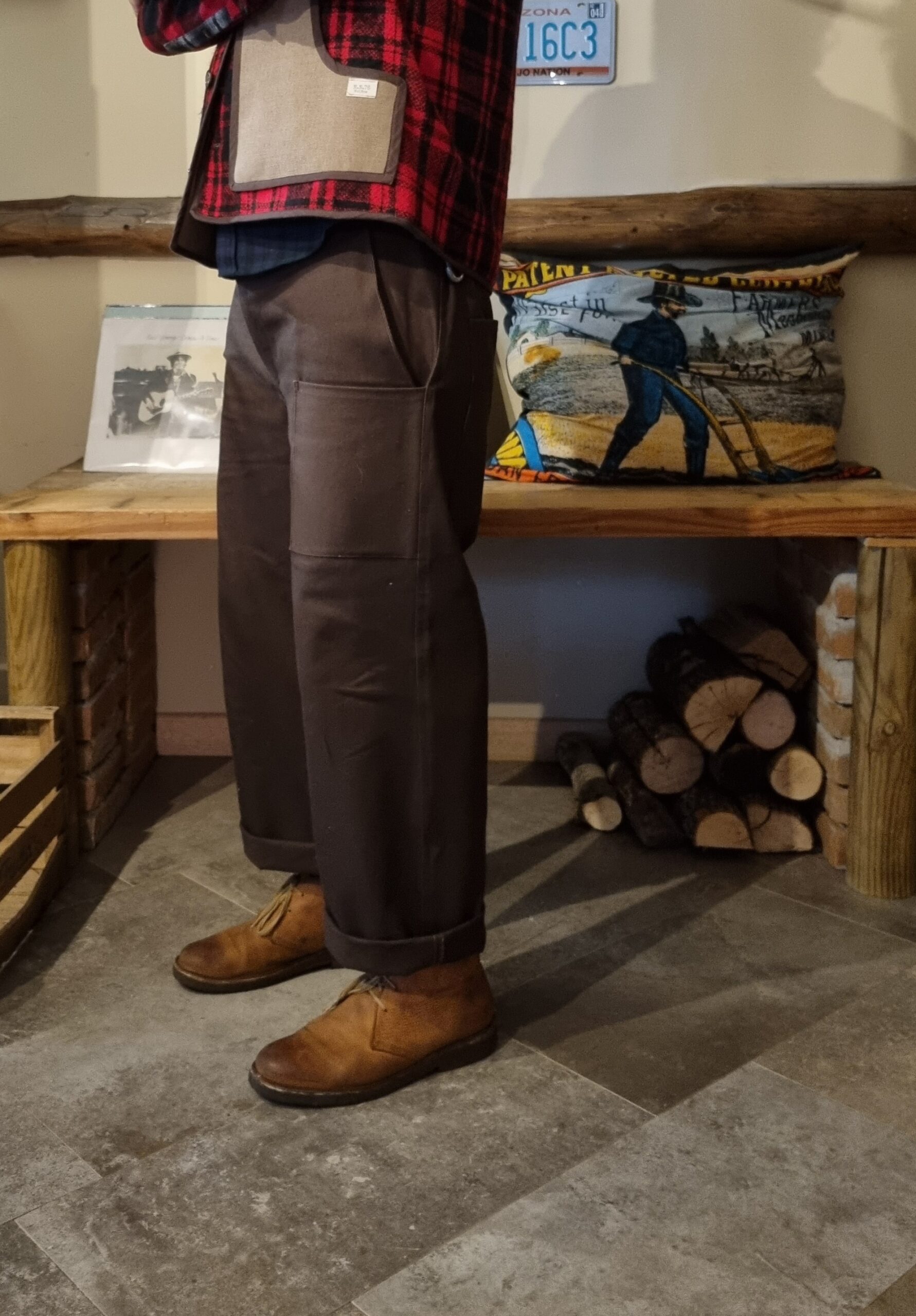 Pantalone fanteria di Marina XX Secolo realizzato in una calda tela di Cotone nei toni del Brown Chestnut e Caramel – vestibilità comoda – vita con elastico dietro lampo e bottone sul davanti -5 tasche due posteriori ampie una sul davanti e due ai lati – Made in Italy
